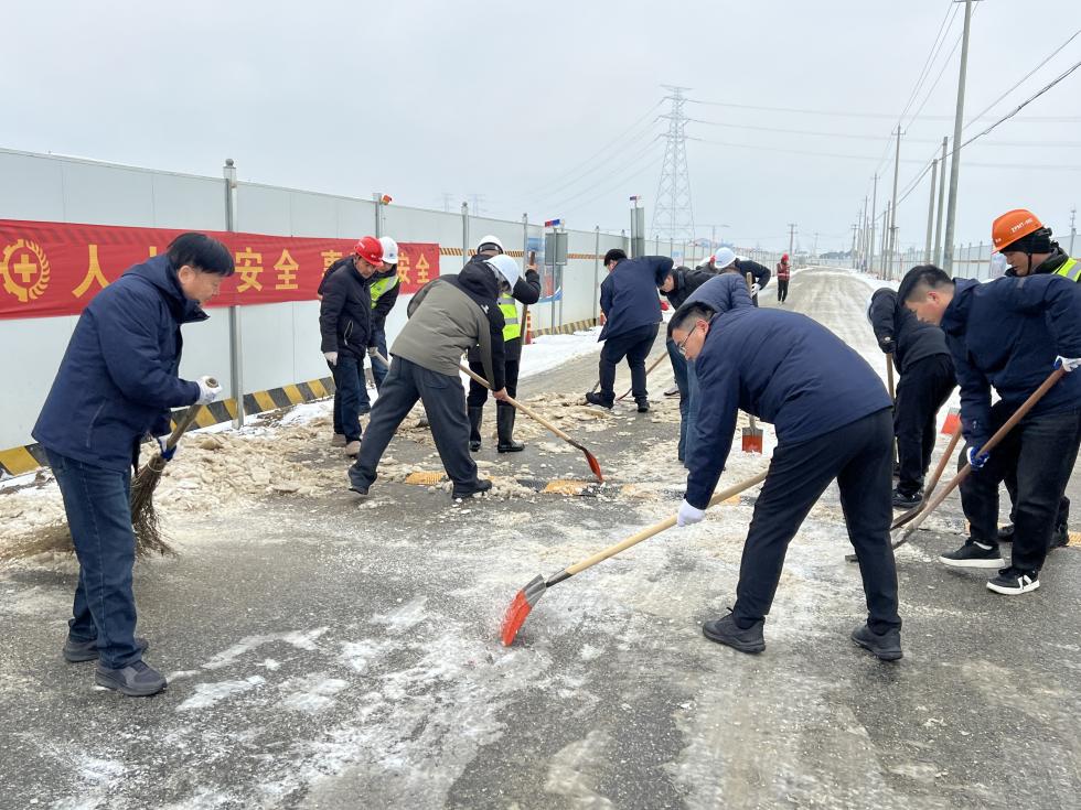 1月20日,寒潮強勢來襲,合肥市普降暴雪,全城銀裝素裹。持續(xù)的低溫雨雪冰凍天氣給城市交通運行和項目建設(shè)帶來嚴(yán)峻考驗,道路積雪結(jié)冰,存在安全隱患。為積極應(yīng)對低溫雨雪天氣,保障重點項目現(xiàn)場安全,消除潛在風(fēng)險,市引江投資公司黨委迅速響應(yīng),組織公司下轄三個黨支部的數(shù)十名黨員、群眾,奔赴中派碼頭項目建設(shè)現(xiàn)場,開展清雪除冰志愿服務(wù)主題黨日活動?;顒蝇F(xiàn)場,大家手持鐵鍬、掃帚等工具,分工協(xié)作,有序地對項目現(xiàn)場作業(yè)區(qū)域的主要通道積雪進行清理。經(jīng)過一小時多的辛勤勞動,項目現(xiàn)場主要區(qū)域的積雪被有效清除,通行安全和作業(yè)環(huán)境得到切實改善,為項目在極端天氣下的有序推進提供了保障。此